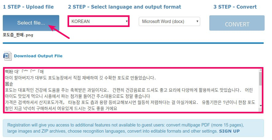 첫번째, ONLINEOCR.NET 이용하는 방법