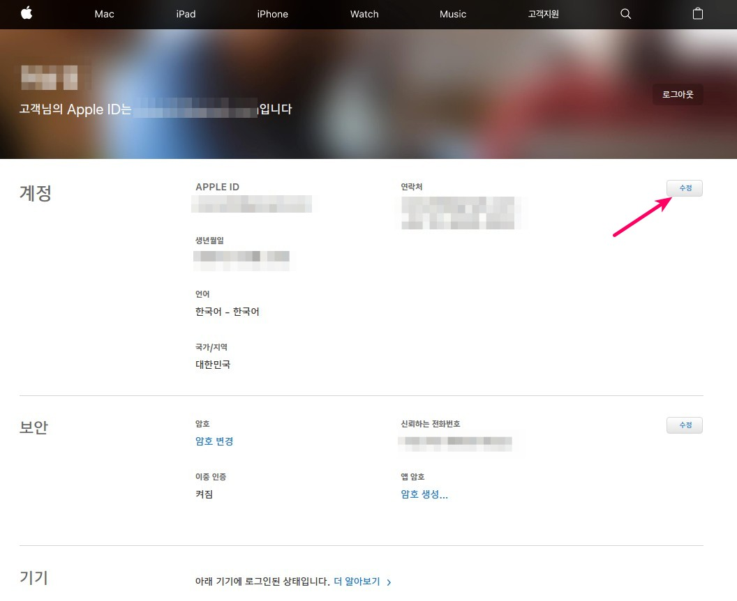 일단 애플 계정을 변경하고 싶으시다면 "appleid.apple.com" 에 접속을 하셔야 합니다. 접속 하신후에 기존에 사용하시던 메일 주소와 비밀번호를 가지고 입력을 하셔서 로그인을 하시면 됩니다. 로그인을 하신후에는 아래와 같이 계정 부분에 상단에 있는 "수정" 메뉴를 클릭 하셔서 계정 설정을 변경 하시면됩니다.